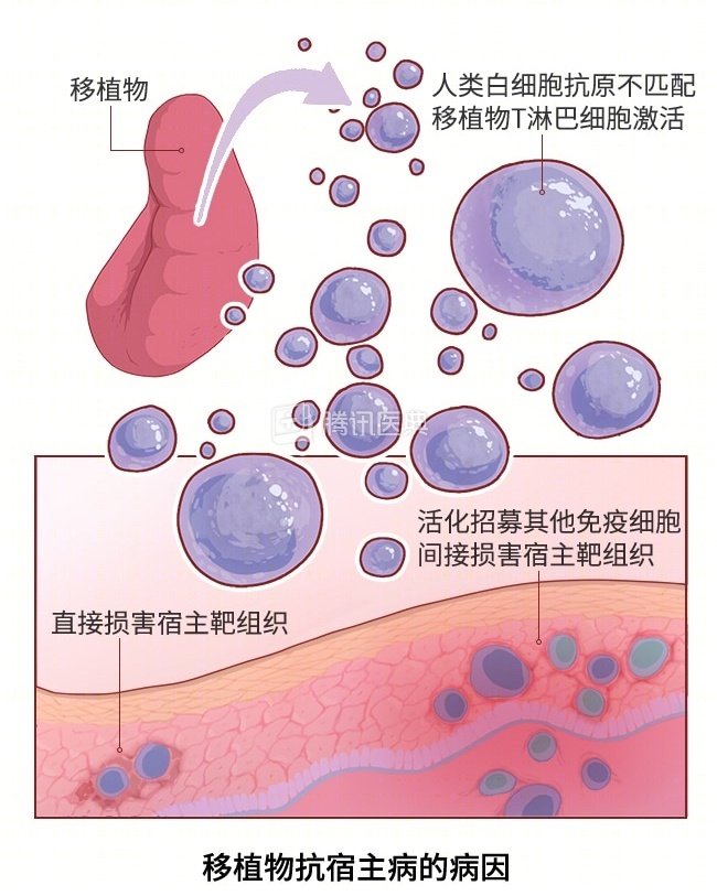 但新输进来的血液是不好惹的:新血液里的淋巴细胞,会在病人的体内存活、克隆增殖和活化,发展壮大后就反客为主,起兵造反,对病人自身的细胞发起攻击。